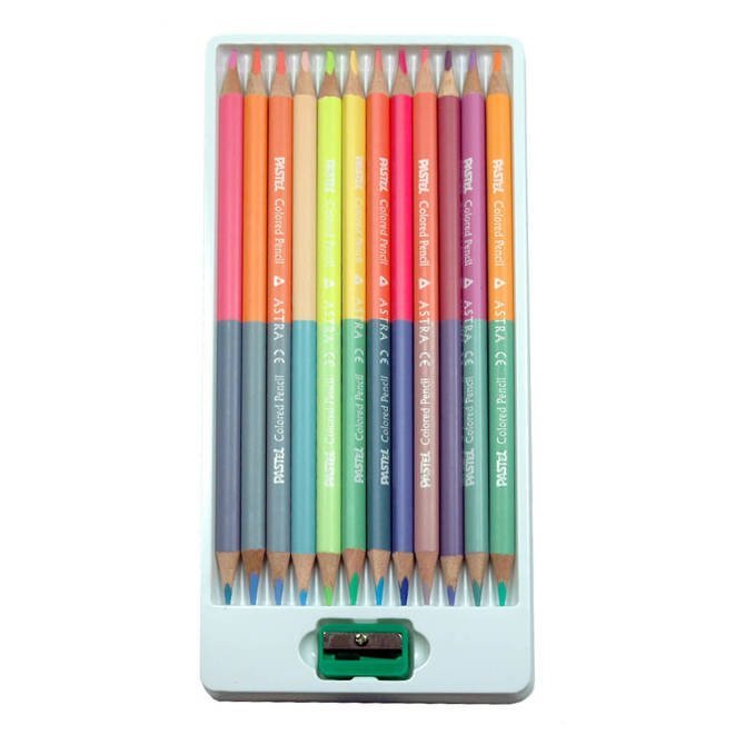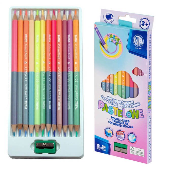 Kredki dwustronne trójkątne pastelowe 12/24 ASTRA