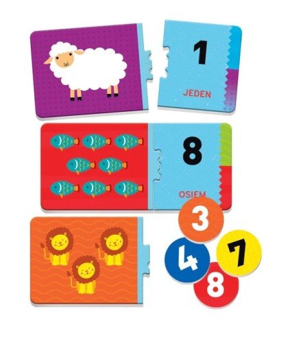 Duże, solidne elementy zostały wykonane z trwałej i bezpiecznej tektury, odpowiedniej dla małych rączek. Kolorowe, przyjazne ilustracje zachęcają do samodzielnej zabawy, a także do wspólnego odkrywania świata liczb z rodzicami.