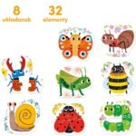 W poręcznym pudełku zamieszkało 8 sympatycznych owadów i innych malutkich mieszkańców łąki i ogrodu. Każdy składa się z 4 dużych elementów.