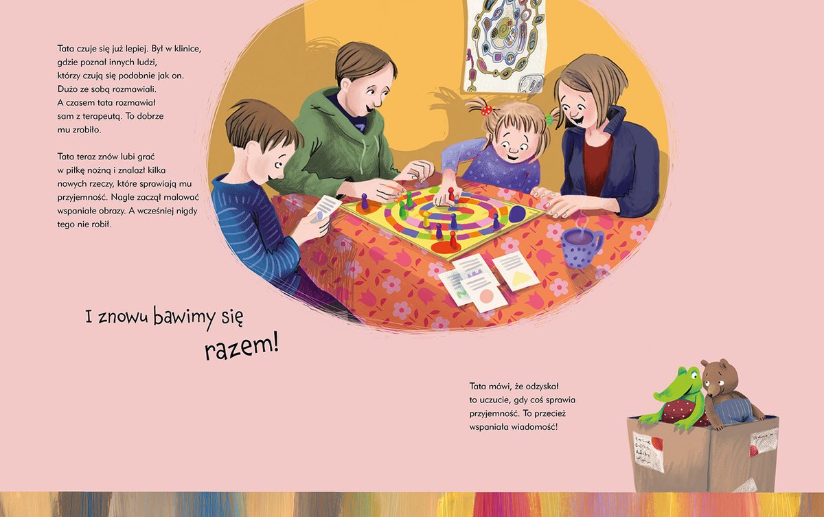 Ta książka opowiada z perspektywy dzieci o różnych chorobach i zaburzeniach psychicznych. Mówi o tym, jak wpływają one na codzienne życie osób nimi dotkniętych, a także ich rodzin. Ten praktyczny poradnik, pełen wspierających i mądrych wskazówek, ułatwi młodszym i starszym czytelnikom rozpoczęcie szczerej rozmowy na temat tych chorób i pokaże im sposoby radzenia sobie w sytuacjach, gdy pojawią się one w ich życiu.