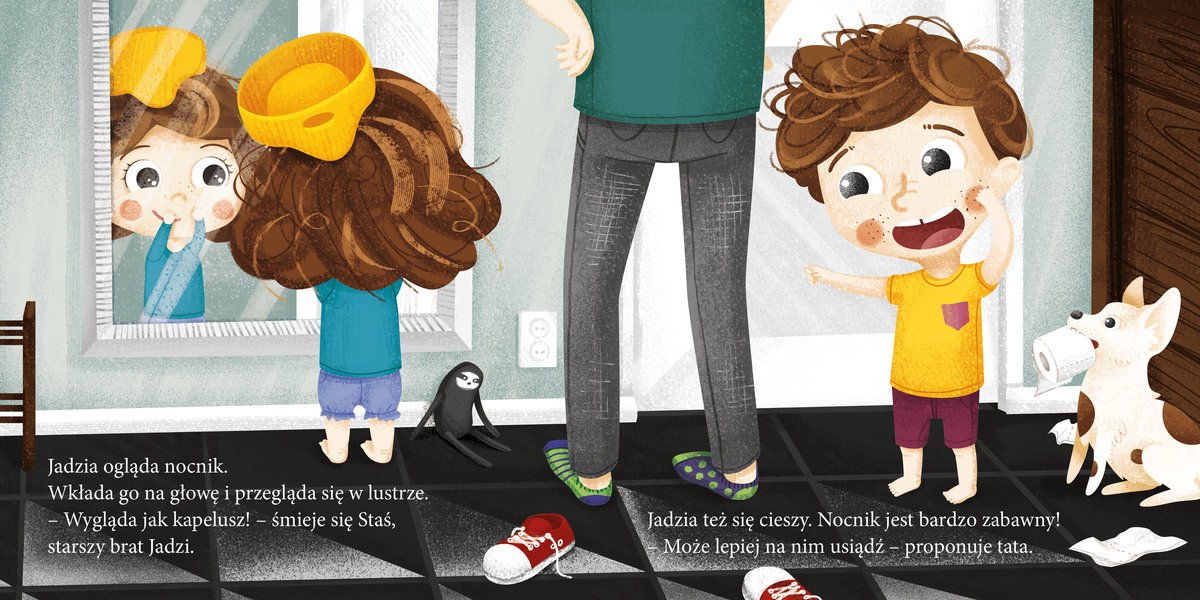 Jadzia dostała prezent! Ale co to? Coś na głowę, coś do przechowywania zabawek? Nie, to nocnik do robienia siku! Staś – brat Jadzi – o tym wie, ale Jadzia dopiero uczy się, do czego służy nowy przedmiot. Czy malutkiej dziewczynce uda się go oswoić?