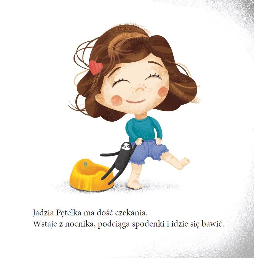 “Jadzia Pętelka” to seria dedykowana najmłodszym czytelnikom. W każdej części maluchy oraz ich rodzice mają szansę rozpoznać sytuacje z własnej codzienności. Podążając za tytułową bohaterką, odkryją więc sposoby na wyciszenie przed snem, oswoją temat kąpieli, mycia zębów czy siusiania do nocnika, wspólnie przygotują się do wyjścia na spacer. Dzięki prostemu językowi, krótkim tekstom, elementom aktywizującym oraz czytelnym, zabawnym ilustracjom, lektura przyciągnie uwagę dziecka i wesprze je w stawianiu czoła codziennym maluszkowym wyzwaniom.