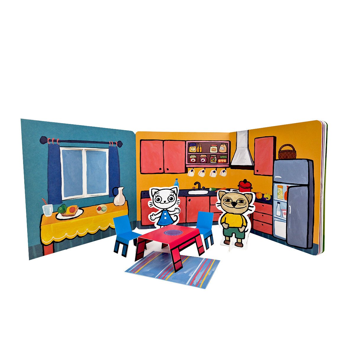 Przeczytaj historyjkę, przemień książkę w uroczy domek, ustaw mebelki i baw się tekturowymi figurkami.