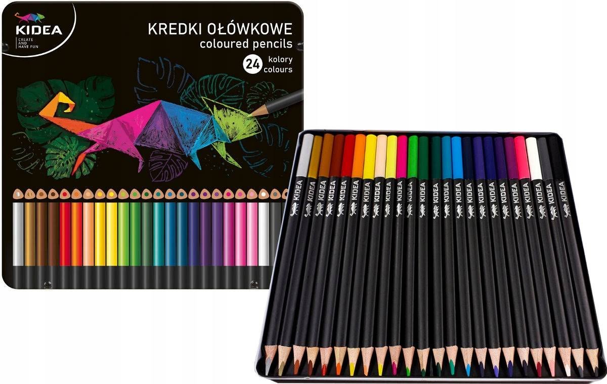 Kredki Kidea trójkątne w metalowym pudełku (24 kolory)