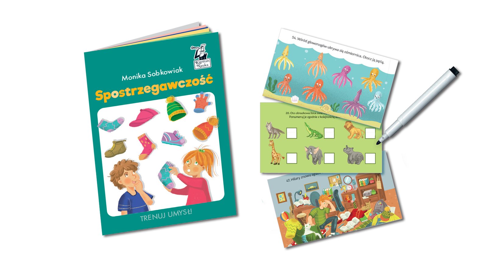 „Spostrzegawczość” zawiera atrakcyjnie zilustrowane zagadki, które łączą kreatywną zabawę z treningiem spostrzegawczości i koncentracji.