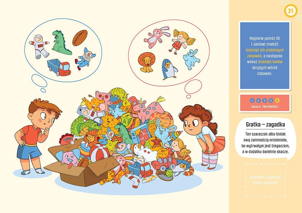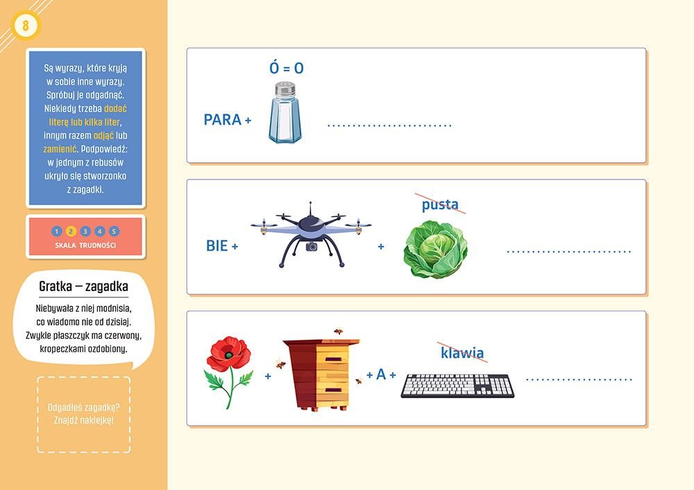 “Zabawa na 102” to prawdziwa skarbnica rozmaitych łamigłówek, które zostały starannie zaprojektowane, aby stymulować umysł na wielu płaszczyznach. W środku znajdziesz blisko sto różnorodnych zadań, które angażują, uczą, bawią i rozwijają. Ta książka to idealne narzędzie do ćwiczenia i wzmacniania zdolności matematycznych, poprzez ciekawe zagadki liczbowe oraz logiczne wyzwania. Jednocześnie wspiera rozwój umiejętności językowych dzięki zabawom słownym i zakodowanym wiadomościom. Czytelnicy doceniają, jak wciągające są to formy nauki!